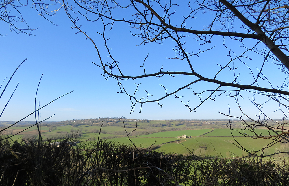 The walk is nice and varied - some bits through fields, some through woods. There are some lovely views at the high points: