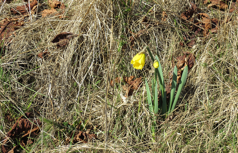 It was a really gorgeous day for walking, even though it’s still cold enough to have to scrape ice off the car in the morning there are signs of spring all over the place, snowdrops, wild primroses even a very optimistic daffodil: