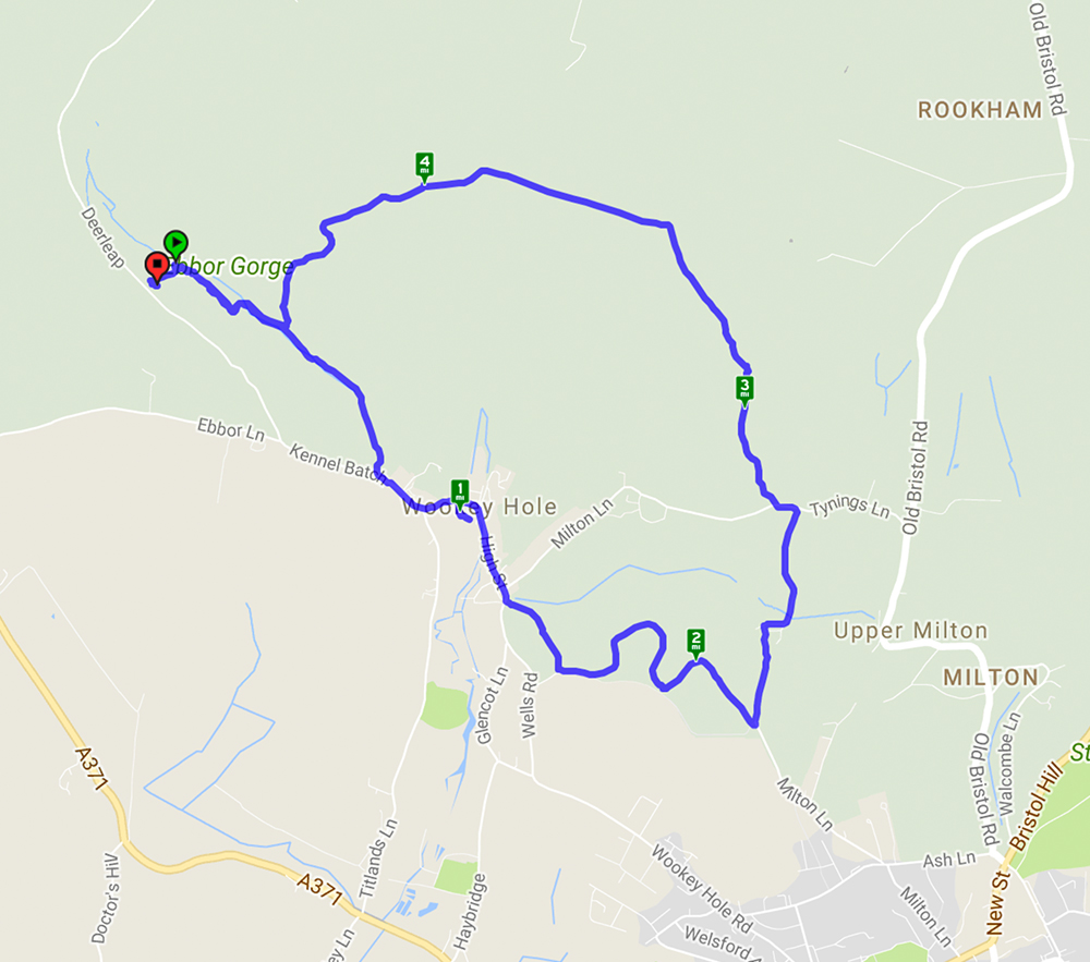 Welcome to our third featured walk which is a 4.9 mile circular hike through Ebbor Gorge on the West Mendip Way. Full instructions are below. This walk starts from Ebbor Gorge car park and heads down into the reserve before diverting into Wookey Hole village. From there it goes across fields and through woods before returning to the nature reserve and back to the car park. A challenging walk with steep flights of steps and climbs up hills but well worth the effort for the far reaching views across the Somerset countryside. The limekilns and rock formations are an interesting addition.