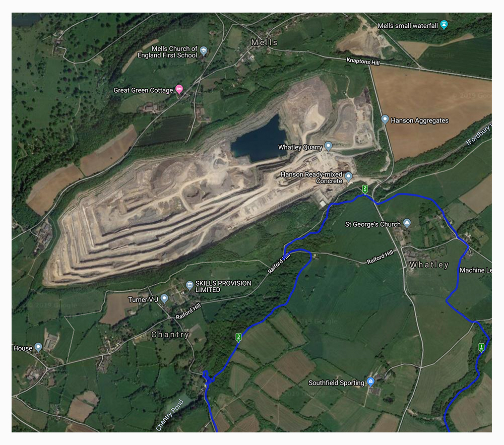 The satellite view of the map shows the immensity of the quarry